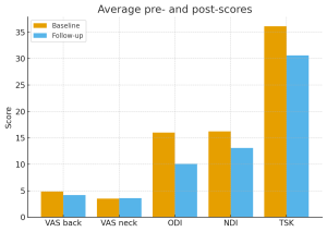 Dolor cervical: El promedio grupal se mantuvo estable, aunque aproximadamente un tercio de los pacientes logró un alivio significativo.