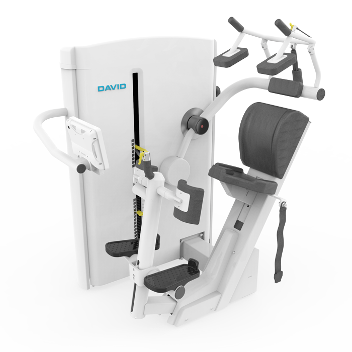 DAVID fabrica equipamiento de ejercicio para la espalda. Colaboramos con hospitales, centros de fisioterápia, clínicas de ortopedia, centros de bienestar, y hoteles. El equipamento está dotado con software EVE (ejercicio evaluado) para monitorizar los resultados de los clientes y la gestión del lugar.