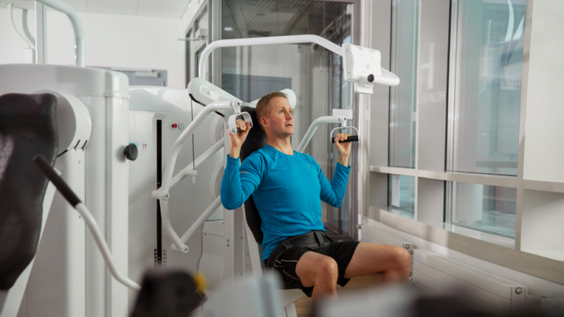 Ściąganie ramion Wyjątkowe urządzenie do ćwiczeń wielostawowych górnej części ciała Optymalne kąty w stawach...