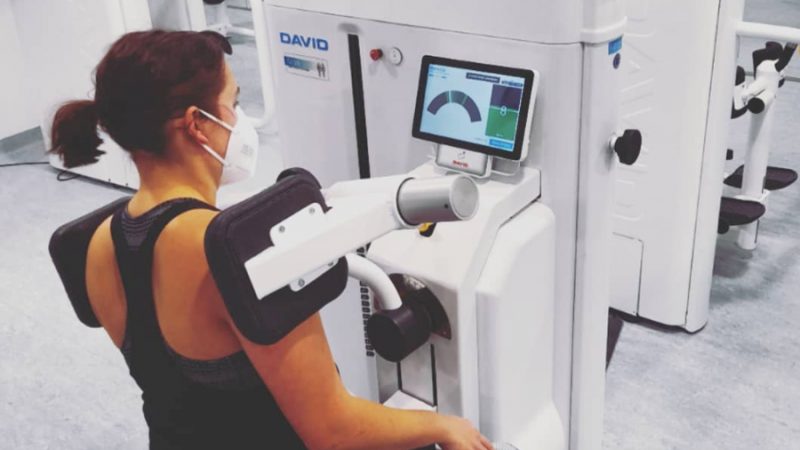 Macchina per la rotazione interna gleno-omerale Esercizio di pura rotazione interna per la spalla....